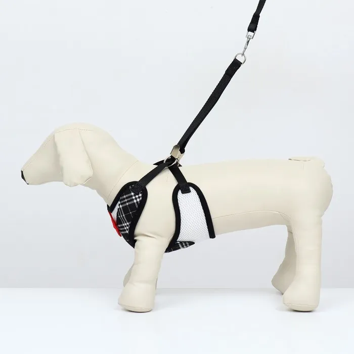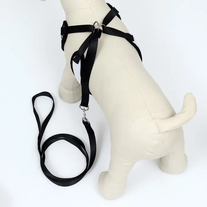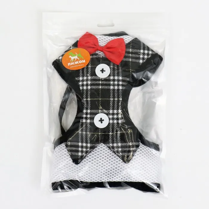 Комплект с мягкой шлейкойи бантиком "Клетка", L, поводок 120 x 1,5 см, ОГ 35-50 см, чёрный 96837 — Характеристики