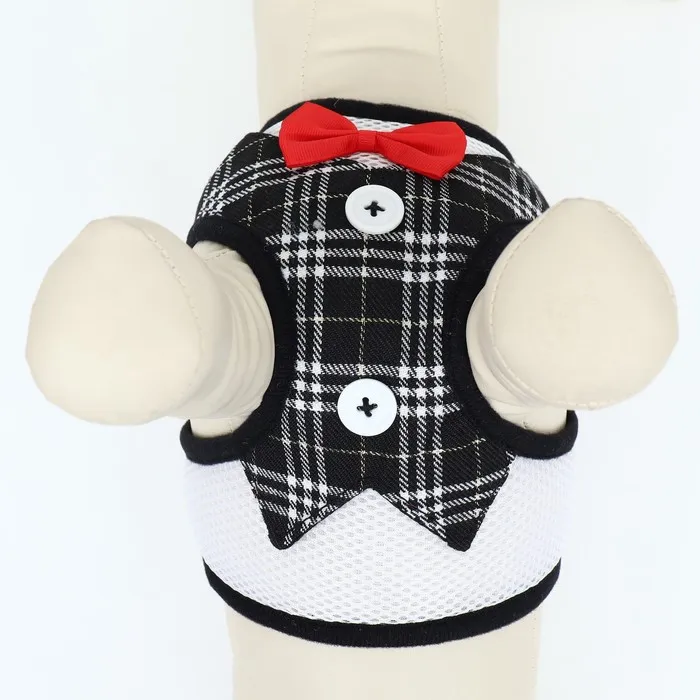 Комплект с мягкой шлейкойи бантиком "Клетка", L, поводок 120 x 1,5 см, ОГ 35-50 см, чёрный 96837