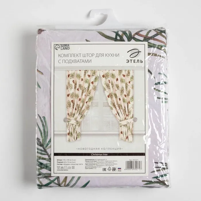 Комплект штор для кухни с подхватами Christmas tree 145х180см-2 штуки, габардин — Характеристики