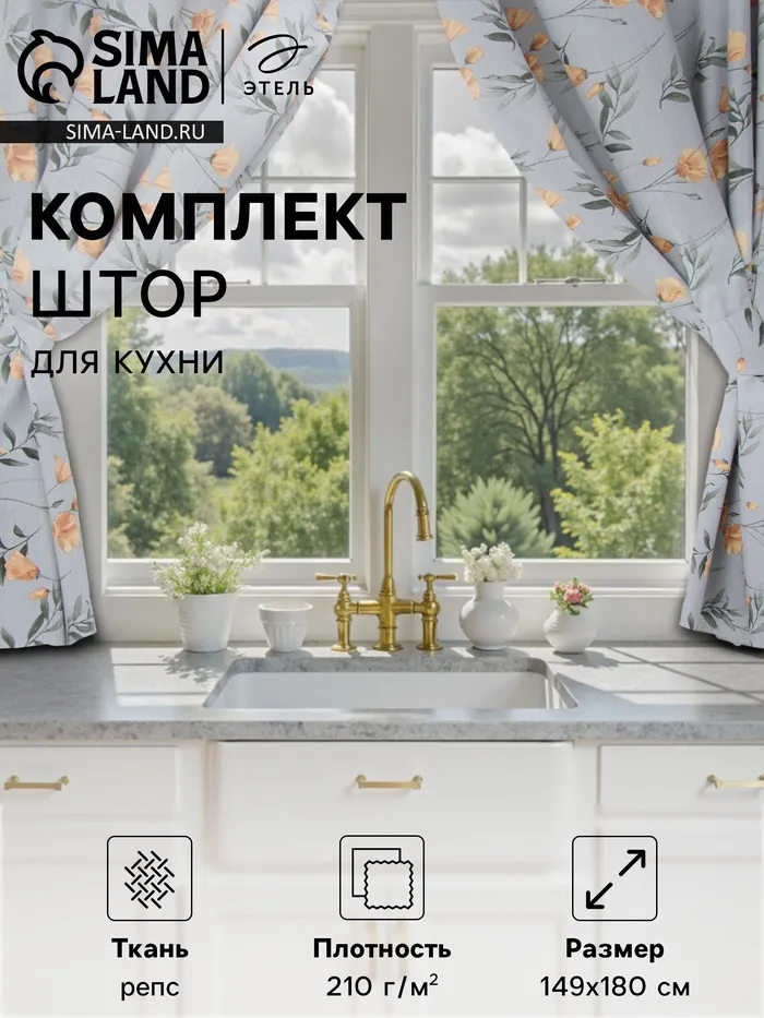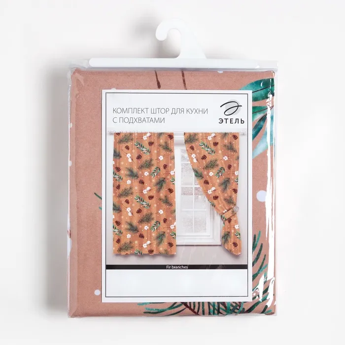Комплект штор для кухни с подхватами «Этель» Fir branches, 145×180 см - 2 шт., габардин — Характеристики