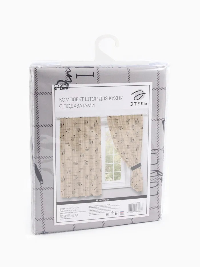 Комплект штор для кухни с подхватами Этель Homemade 170х145 см-2 шт., 100% п/э — Характеристики