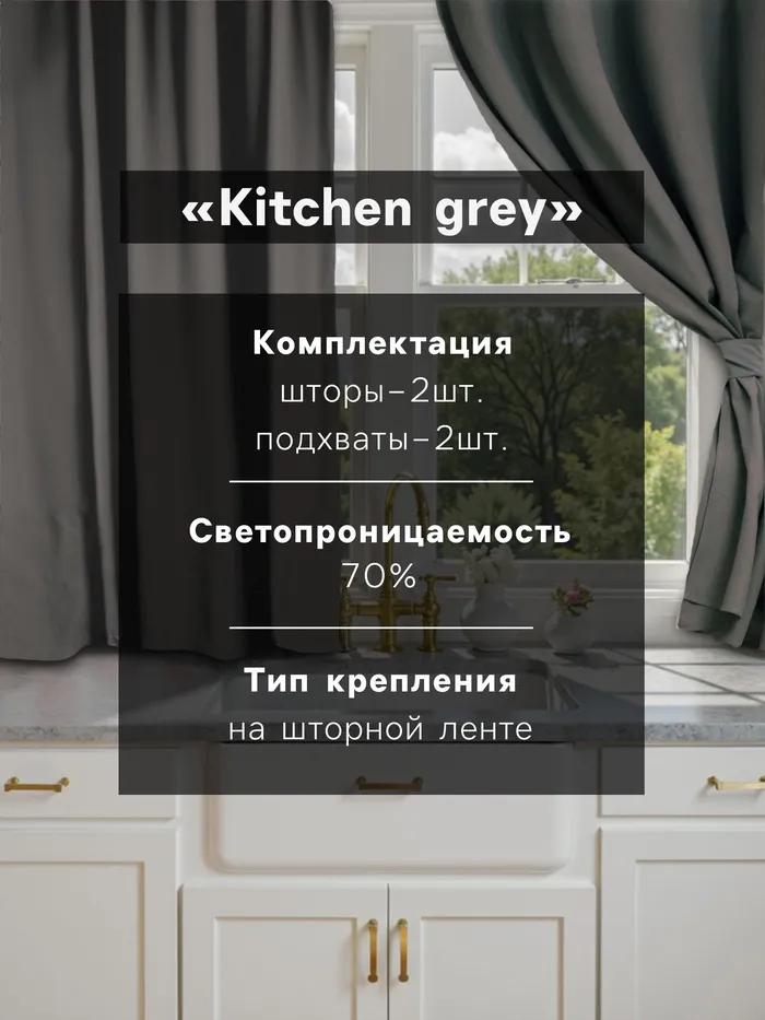 Комплект штор для кухни с подхватами Этель Kitchen, серый, 150×180 см - 2 шт. — Характеристики