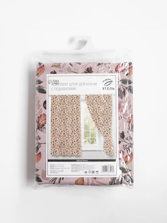 Комплект штор для кухни с подхватами Этель Nature forest, 145×180 см-2 шт., 100% п/э — Характеристики