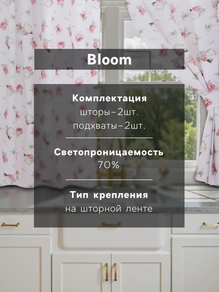 Комплект штор для кухни с подхватами Этель "Tenderness" 149х180 см - 2 шт — Характеристики