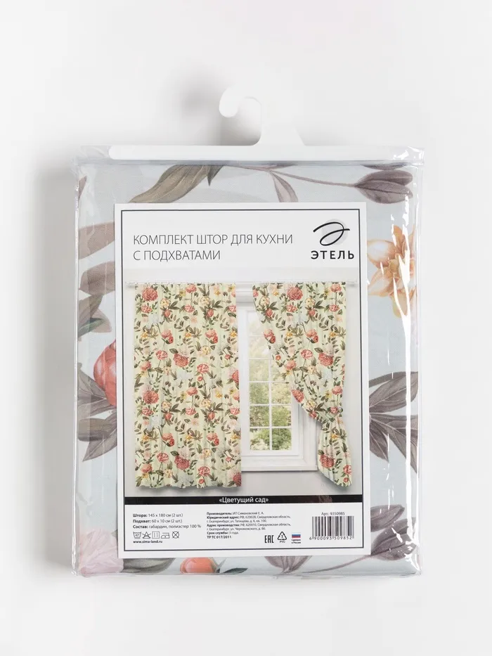 Комплект штор для кухни с подхватами Этель "Цветущий сад" 145х180 см - 2 шт, 100% п/э — Характеристики