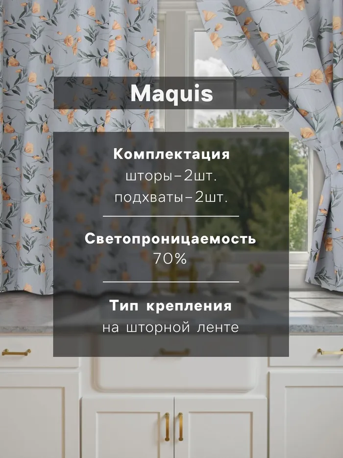 Комплект штор для кухни с подхватами Этель "Yellow poppies" 149х180 см - 2 шт — Характеристики