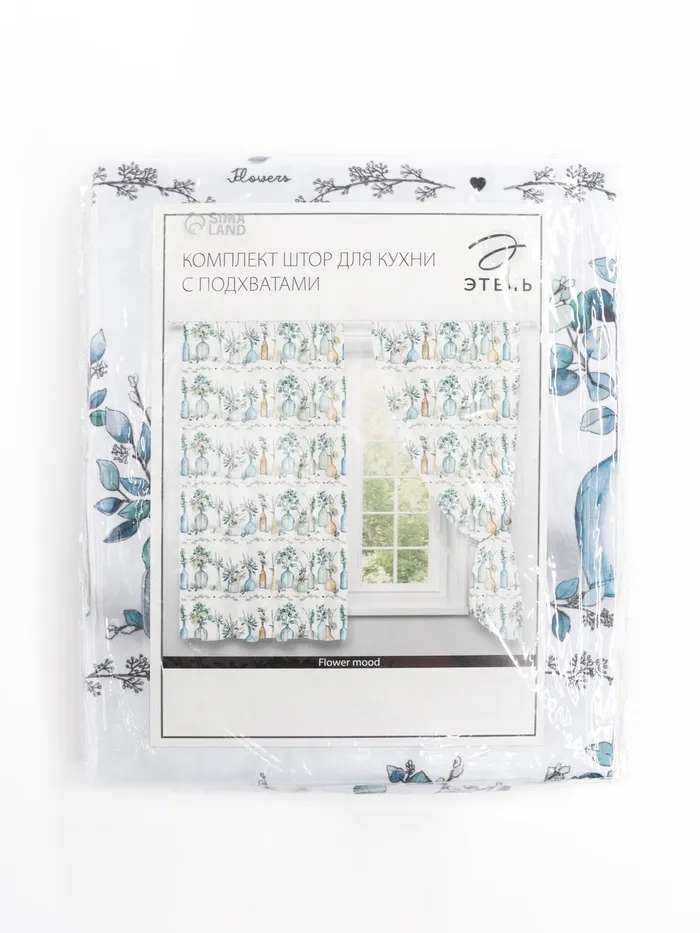 Комплект штор для кухни с подхватами Flower mood, 145×180 см-2 шт., 100% п/э — Характеристики