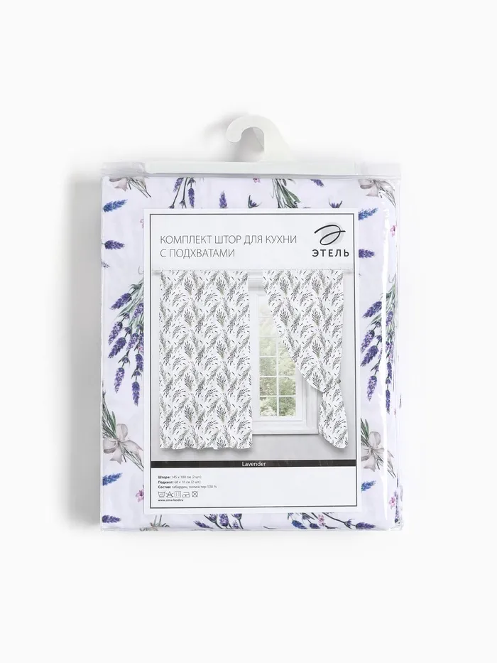 Комплект штор для кухни с подхватами Lavender, 145×180 см-2 шт., 100% п/э — Характеристики
