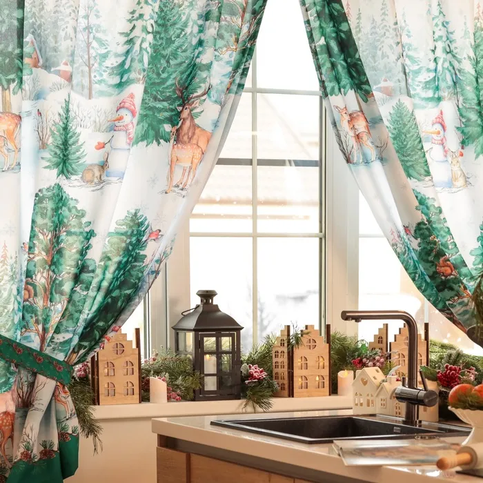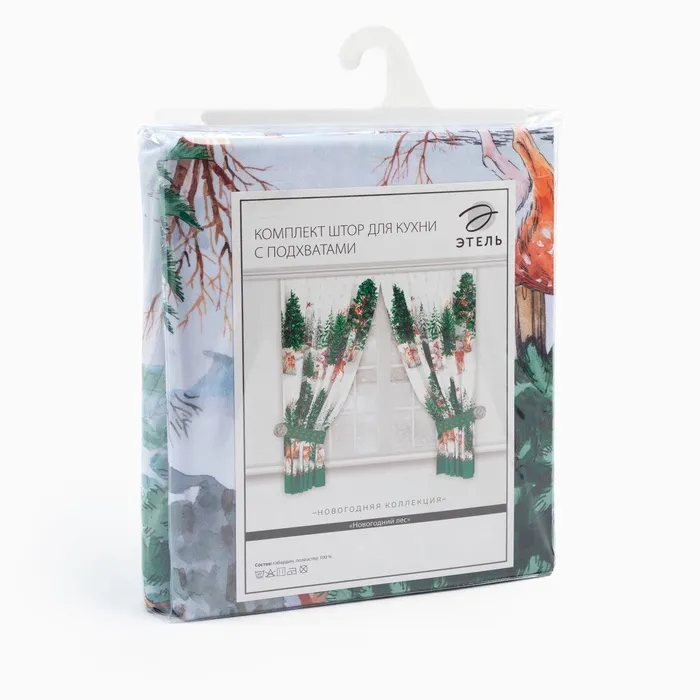 Комплект штор для кухни с подхватами «Новогодний лес» 145×180 см - 2 штуки, габардин — Характеристики