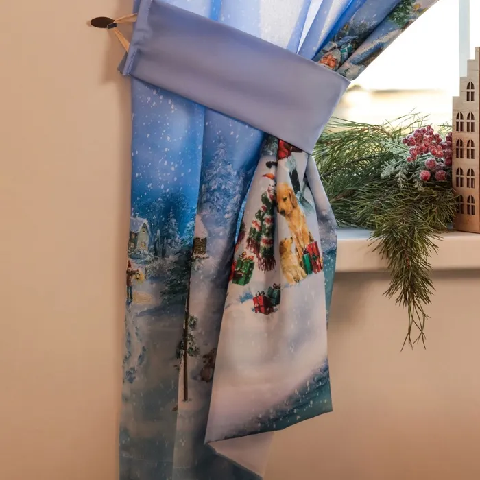 Комплект штор для кухни с подхватами "Рождественский вечер" 145х180см-2 штуки, 100% п/э — Характеристики