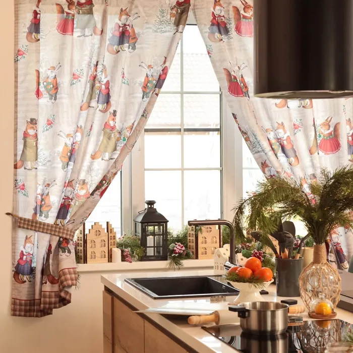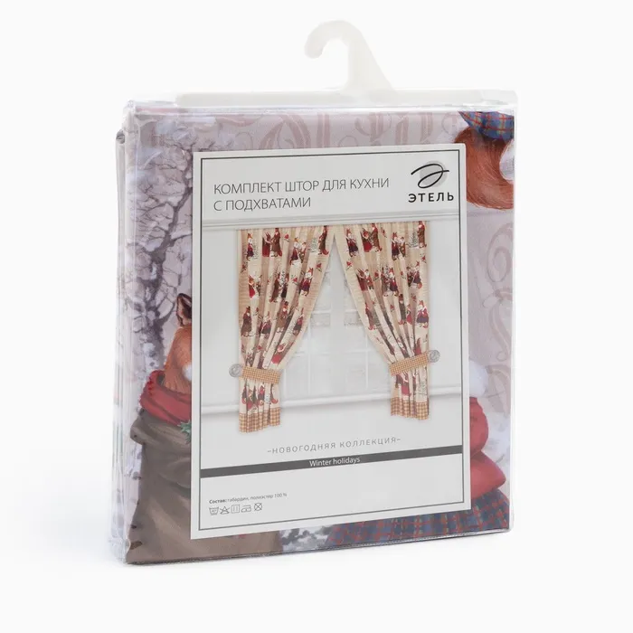 Комплект штор для кухни с подхватами Winter holidays 145×180 см-2 штуки, габардин — Характеристики