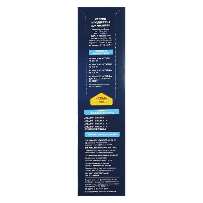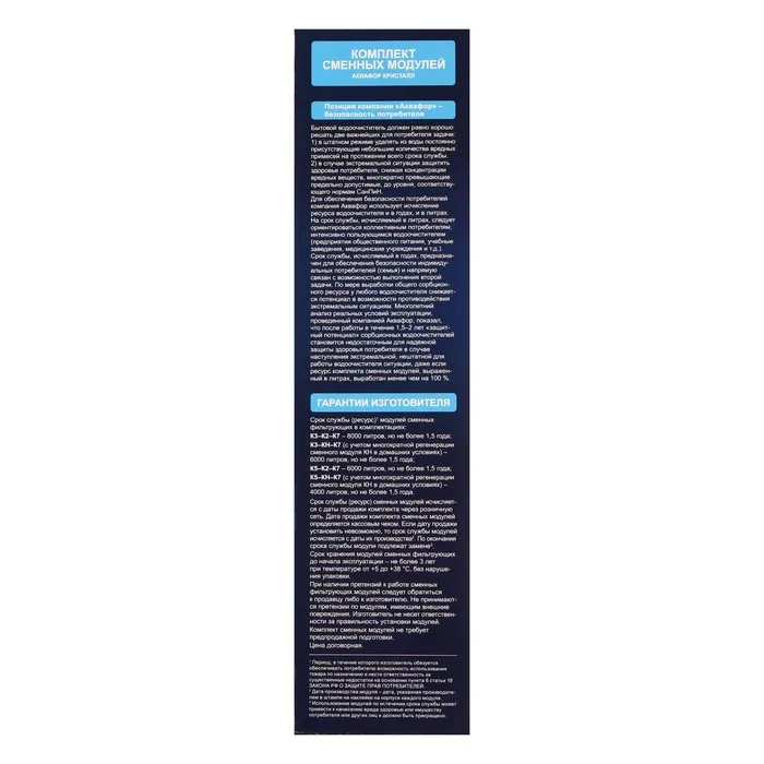 Комплект сменных картриджей для «Аквафор» Кристалл, К5-КН-К7, фильтрующий — Характеристики