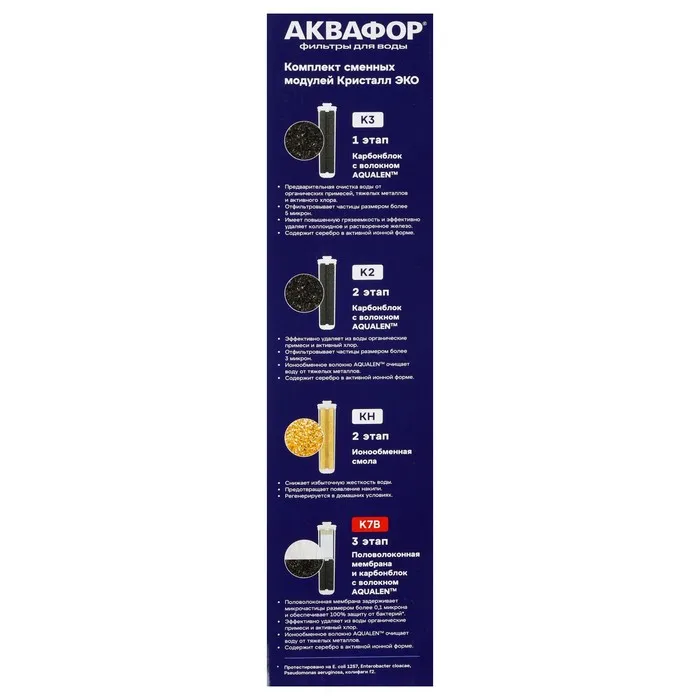 Комплект сменных картриджей для фильтра «Аквафор» Кристалл ЭКО, К3-К2-К7 В — Характеристики