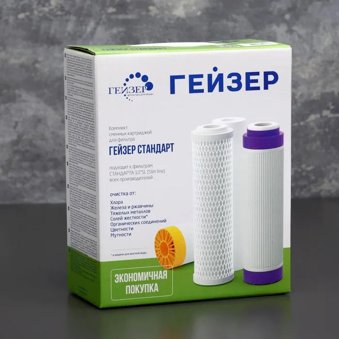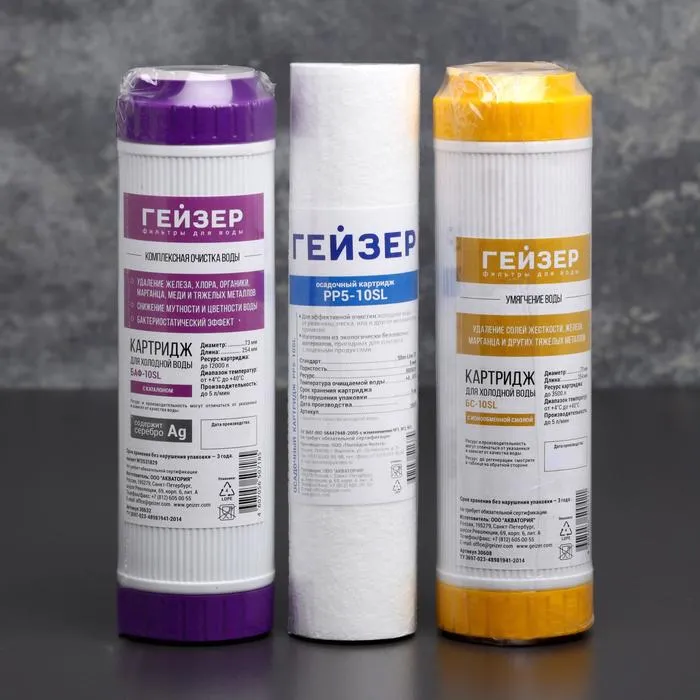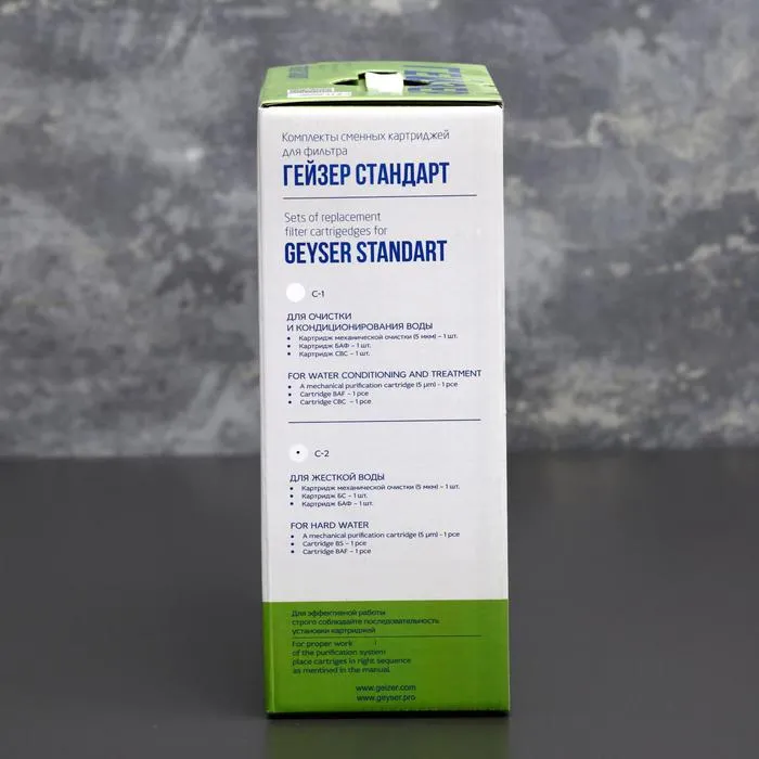 Комплект сменных картриджей С-2 к фильтру «Гейзер. Стандарт» для жёсткой воды — Характеристики