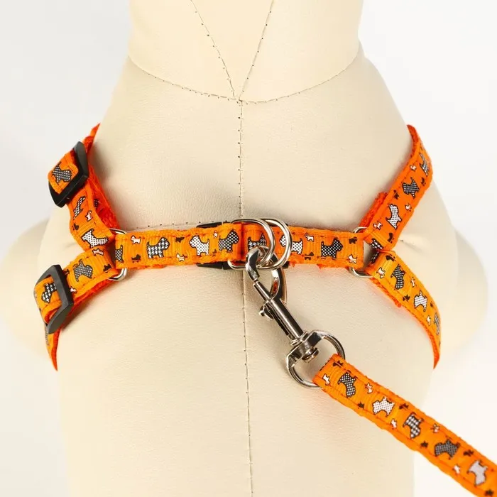 Яркий акцент для маленьких питомцев! Комплект «Собачки»: шлейка и поводок в оранжевом цвете — удобное решение для миниатюрных пород. Лёгкая конструкция и продуманные размеры обеспечивают комфорт во время прогулок.