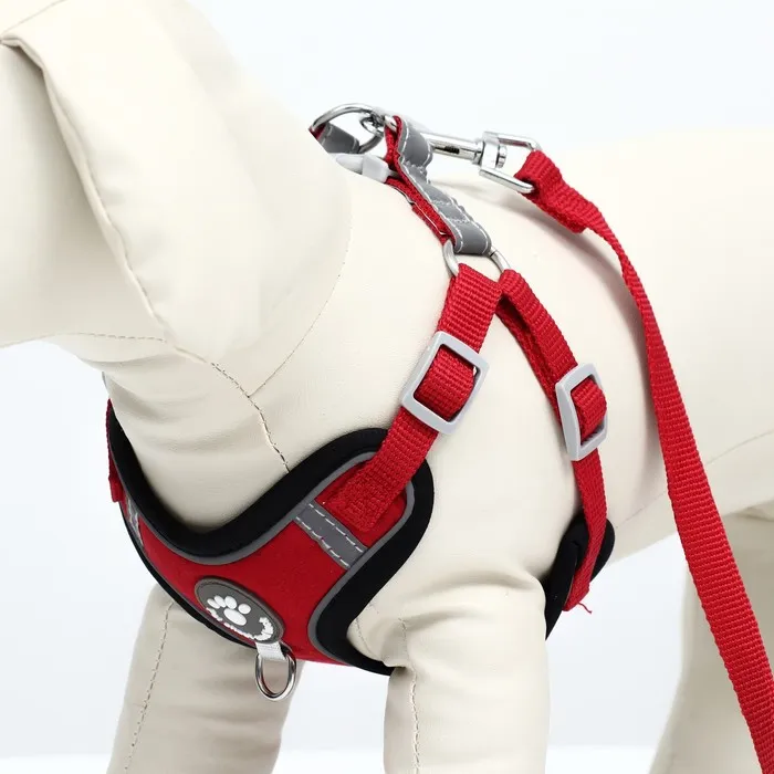 Идеальный комплект для прогулок с вашим верным другом, который доставит истинное удовольствие вам и вашему питомцу. В комплект входит шлейка и поводок.Такой комплект подойдет для собак мелких пород.Шлейка для собак имеет эргономичную форму, благодаря чему смягчается любое натяжение и рывки питомца, ведь нагрузка распределяется равномерно. Амуниция изготовлена из качественной и дышащей ткани – полиэстер. Такая шлейка подойдет для носки на ежедневной основе: на прогулках или дрессировках. Анатомическая посадка шлейки обеспечивает комфортное ношение, а нагрудная лямка расположена ниже шеи и не сдавливает ее.Комплект оснащен светоотражающими вставками, теперь вы и ваш питомец сможете наслаждаться прогулками в темное время суток. Вы больше можете не переживать за безопасность своего любимца, ведь теперь даже в ночное время суток вы всегда сможете видеть своего любимца и держать ситуацию под контролем.Шлейка имеет два кольца для крепления поводка или рулетки: основное кольцо расположено на спинке, а второе на груди, оно может использоваться для коррекции поведения вашего питомца или для обычного адресника.Красный цвет подчеркнет индивидуальность вашего питомца и подойдёт под любой окрас шерсти, тем самым выделив вашего питомца.Позаботьтесь о безопасности и комфорте вашего любимца с нашим замечательным комплектом. Такой подарок будет точно оценен вашим любимцем.