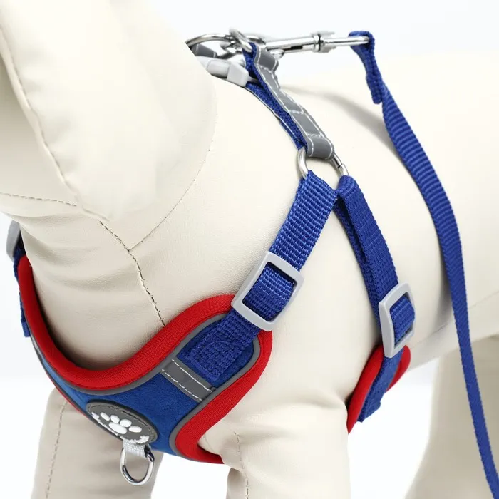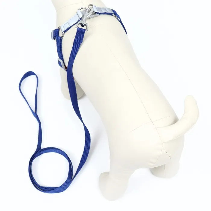 Идеальный комплект для прогулок с вашим верным другом, который доставит истинное удовольствие вам и вашему питомцу. В комплект входит шлейка и поводок.Такой комплект подойдет для собак мелких пород.Шлейка для собак имеет эргономичную форму, благодаря чему смягчается любое натяжение и рывки питомца, ведь нагрузка распределяется равномерно. Амуниция изготовлена из качественной и дышащей ткани – полиэстер. Такая шлейка подойдет для носки на ежедневной основе: на прогулках или дрессировках. Анатомическая посадка шлейки обеспечивает комфортное ношение, а нагрудная лямка расположена ниже шеи и не сдавливает ее.Комплект оснащен светоотражающими вставками, теперь вы и ваш питомец сможете наслаждаться прогулками в темное время суток. Вы больше можете не переживать за безопасность своего любимца, ведь теперь даже в ночное время суток вы всегда сможете видеть своего любимца и держать ситуацию под контролем.Шлейка имеет два кольца для крепления поводка или рулетки: основное кольцо расположено на спинке, а второе на груди, оно может использоваться для коррекции поведения вашего питомца или для обычного адресника.Синий цвет подчеркнет индивидуальность вашего питомца и подойдёт под любой окрас шерсти, тем самым выделив вашего питомца.Позаботьтесь о безопасности и комфорте вашего любимца с нашим замечательным комплектом. Такой подарок будет точно оценен вашим любимцем.
