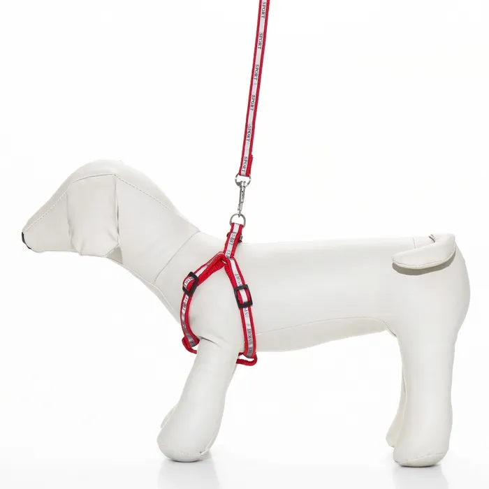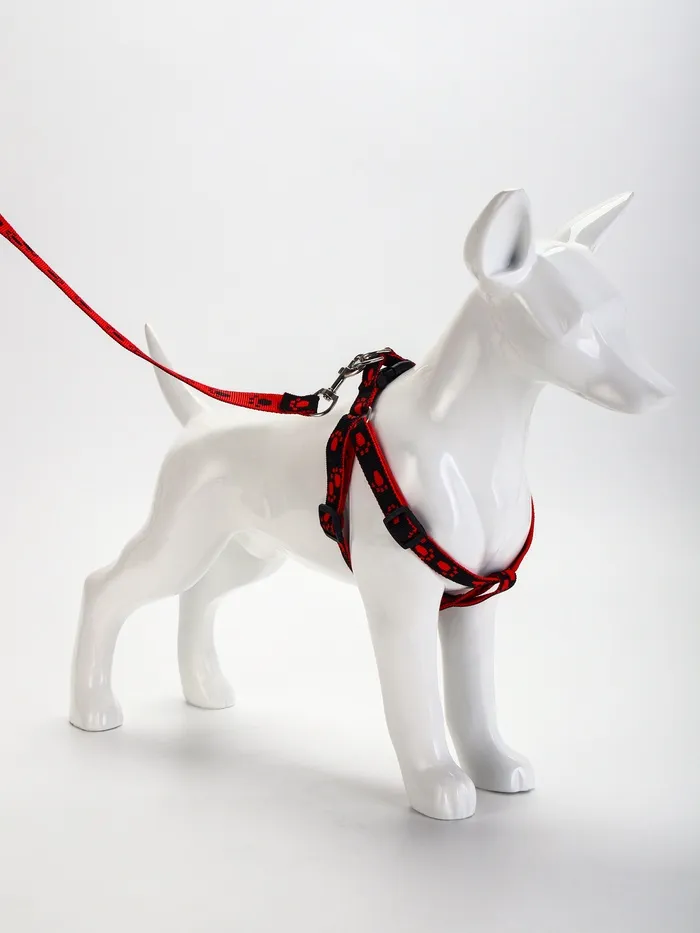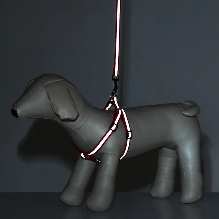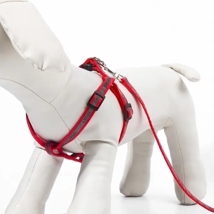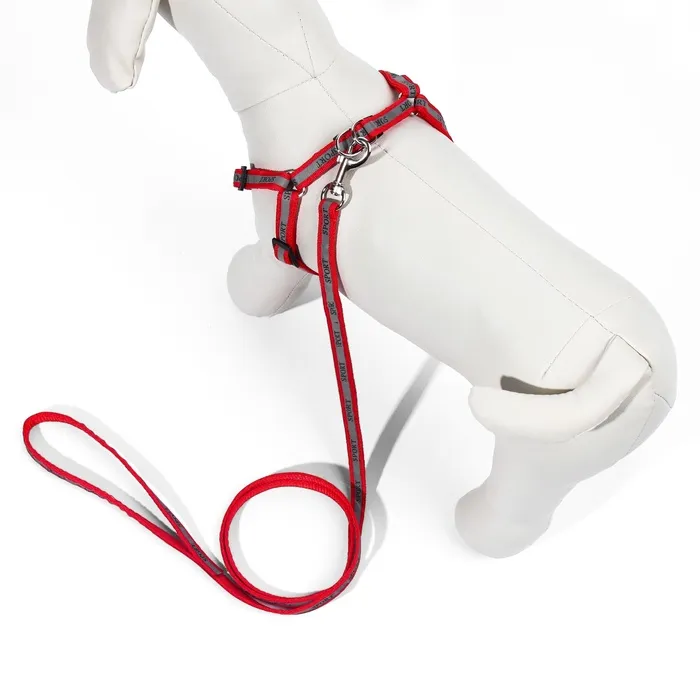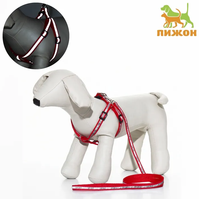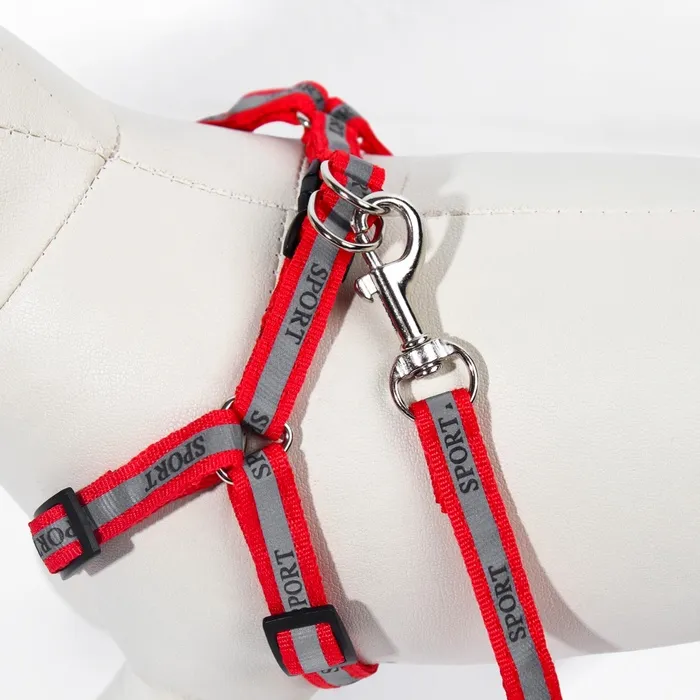 Стильный светоотражающий прогулочный комплект для собак. Шлейка регулируется а ремни шлейки не давят на грудь и шею а равномерно распределяют нагрузку. Шлея для собак 3 , 5 , 10 , 15, 20 кг мелких пород и кошек . Шлейка текстильная , регулируется пластиковыми креплениями. Поводок крепится к металлическому кольцу карабином. На спине амуниция фиксируется застежкой из пластика. Шлейка исключит побег животного, если правильно подобрать размер и отрегулировать ремни.