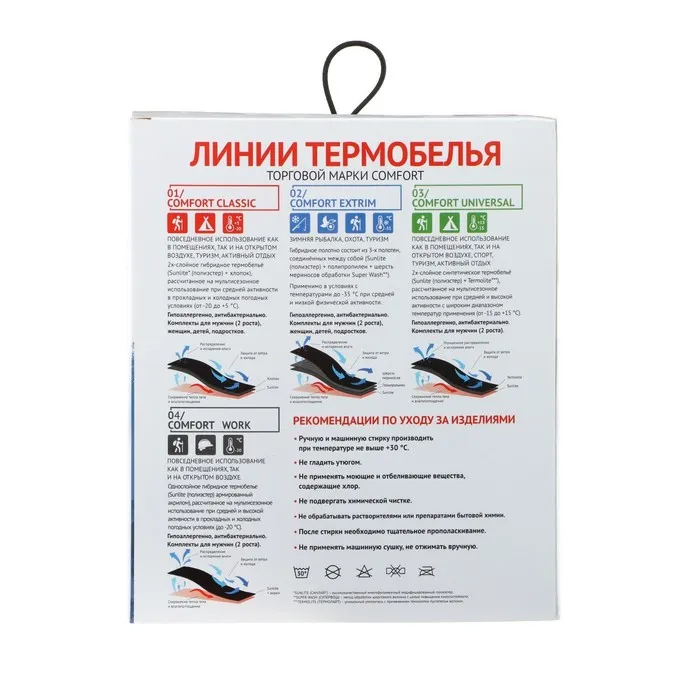 Серия адаптирована для повседневного использования в условиях прохладной и холодной погоды. Обеспечивает комфортное состояние при нагрузках средней активности. Плоский шов, гипоаллергенно, антибактериально.