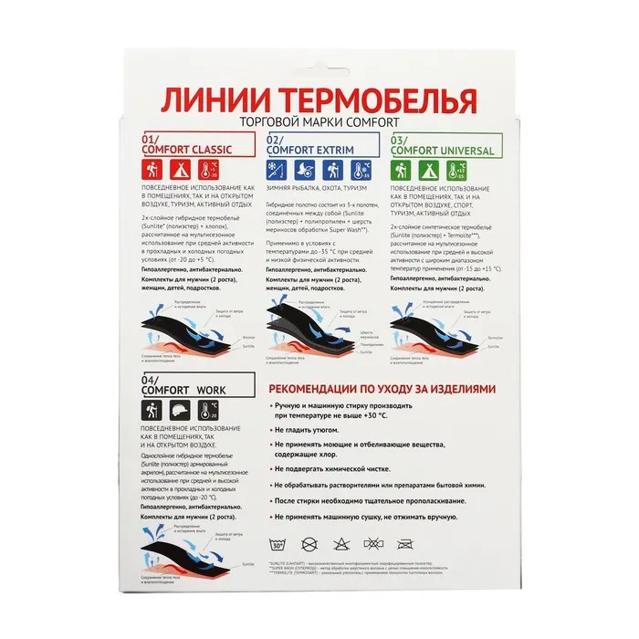 Термобельё обладает отличными влаговыводящими и теплорегулирующими свойствами. Подходит для повседневного использования в условиях прохладной и холодной погоды. Для средней и низкой физической активности. Плоский шов, гипоаллергенно, антибактериально.