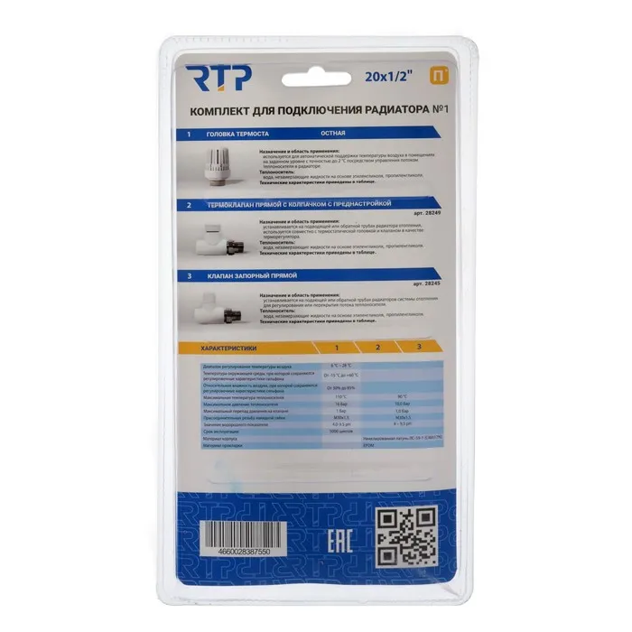 Комплект термостатический для радиатора RTP № 1, d=20 мм х 1/2", прямой — Характеристики