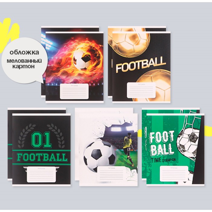Комплект тетрадей из 10 штук, 12 листов в клетку Calligrata "Футбол", обложка мелованный картон, ВД-лак, блок офсет, 5 видов по 2 штуки — Характеристики