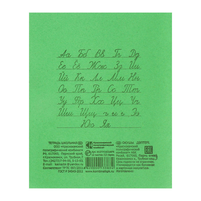 Комплект тетрадей из 20 штук, 12 листов в линию КПК "Зелёная обложка", блок офсет, белизна 92% — Характеристики