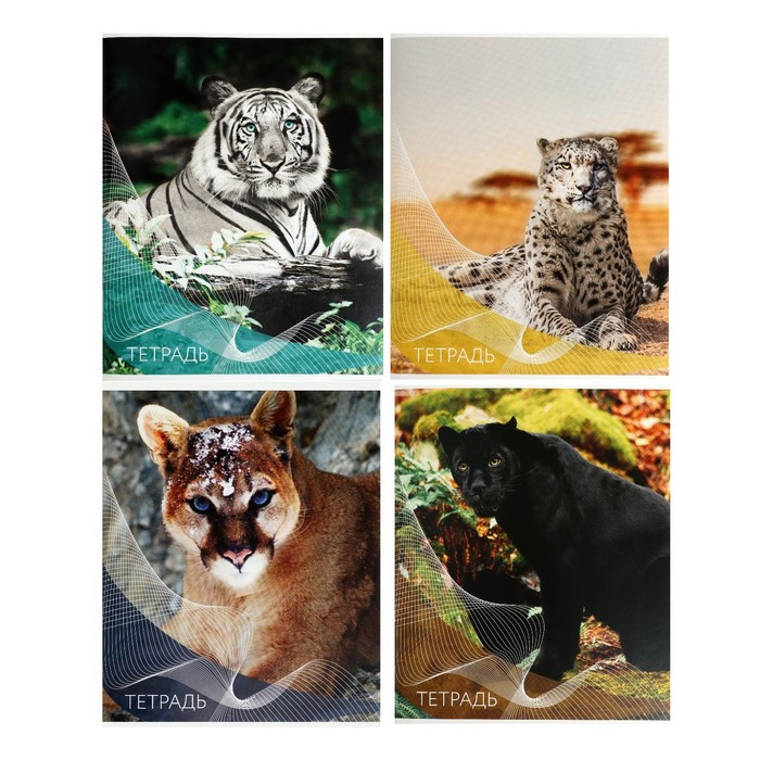 Комплект тетрадей из 4 штук, 96 листов в линию Calligrata "Дикие кошки", обложка мелованный картон, блок №2, белизна 75% (серые листы)