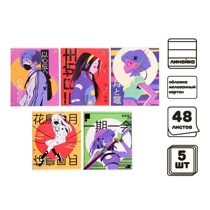 Комплект тетрадей из 5 штук (4 разные + 1 повторяющаяся), 48 листов в клетку Calligrata "Мыльные пузыри", обложка мелованная бумага, блок №2, белизна 75% (серые листы) — Характеристики