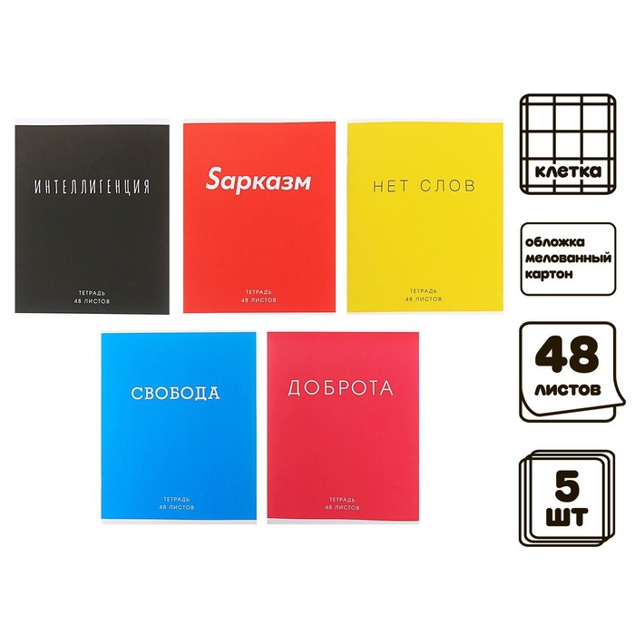 Комплект тетрадей из 5 штук, 48 листов в клетку Calligrata "Фраза", обложка мелованный картон, блок офсет — Характеристики