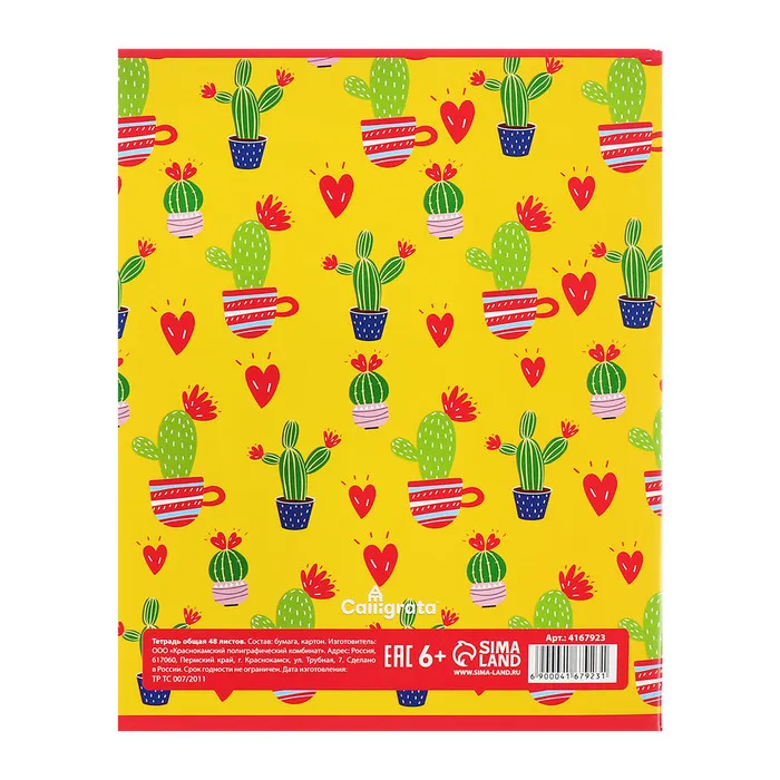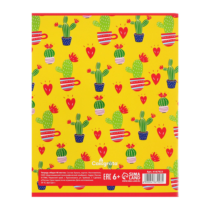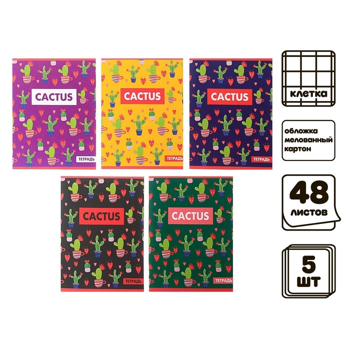 Комплект тетрадей из 5 штук, 48 листов в клетку Calligrata "Кактус", обложка мелованный картон, блок офсет — Характеристики