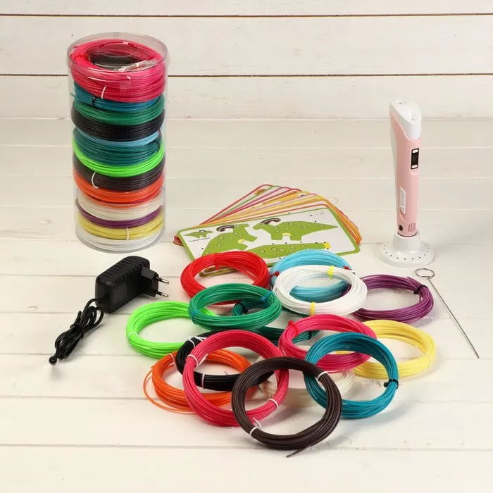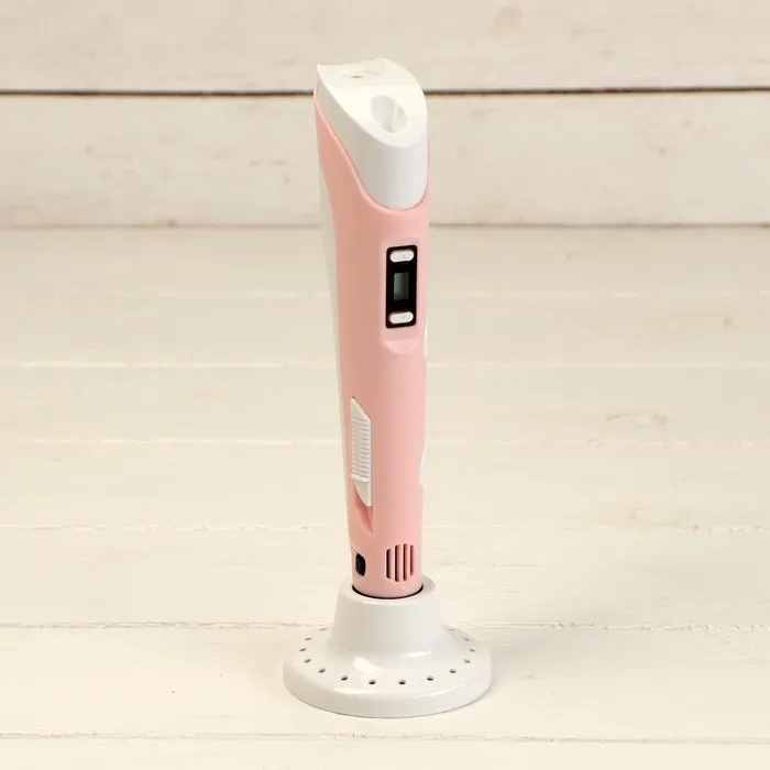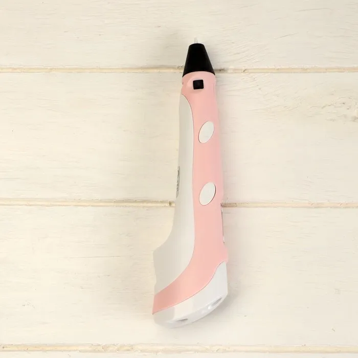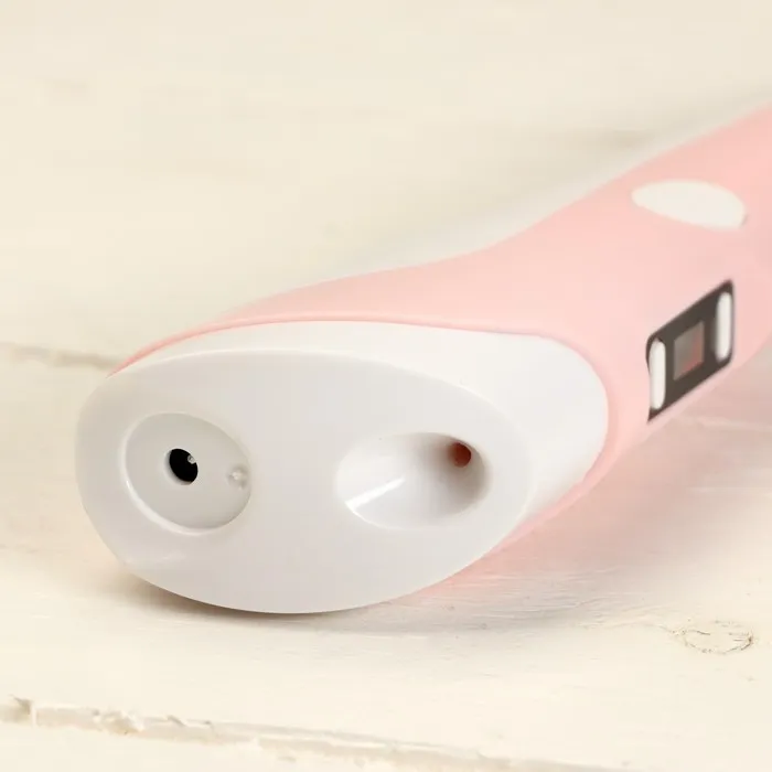 Для детской 3D-ручки используется материал в виде нитей. Во время процесса он нагревается, плавится и становится эластичным. ABS-пластик устойчив к ударам и легкому сгибанию. Жидкокристалический дисплей позволяет регулировать температуру плавления и материал изделия для создания фигур любых форм и размеров.
