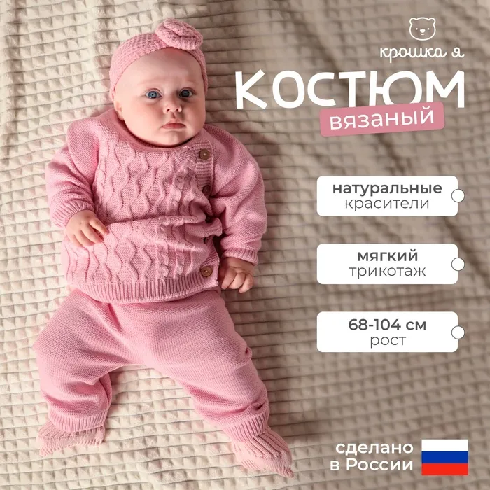 Комплект вязаный Крошка Я Cute, рост 86-92 см, розовый — Характеристики
