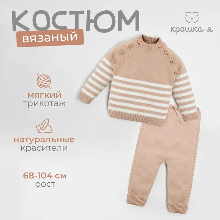 Комплект вязаный Крошка Я Trendy, рост 98-104 см, бежевый — Характеристики