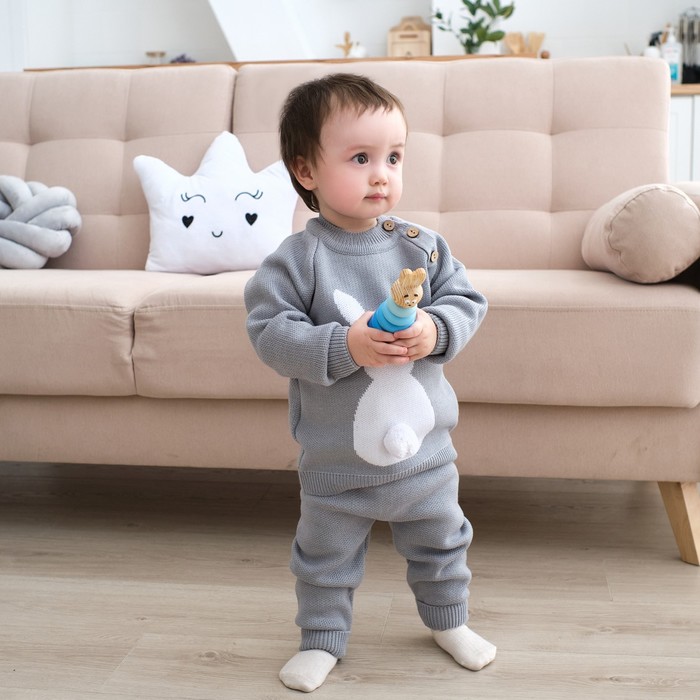 Комплект вязаный Крошка Я «Заяц», рост 86-92 см, серый — Характеристики