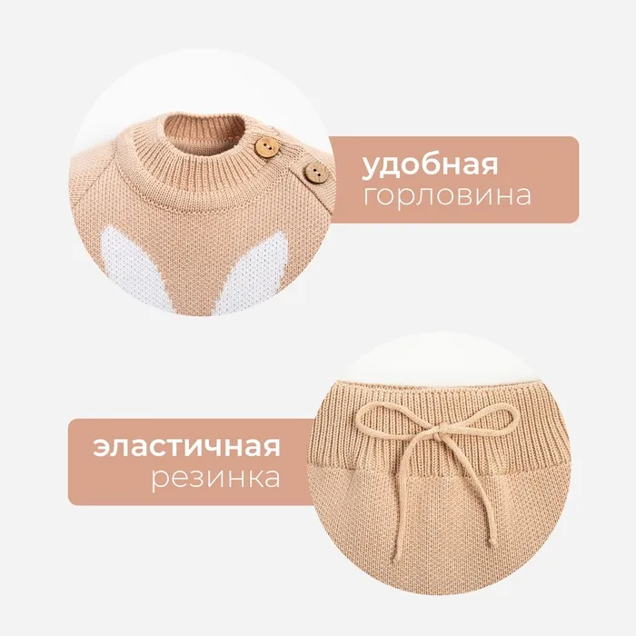 Комплект вязаный Крошка Я «Заяц», рост 98-104 см, бежевый — Характеристики
