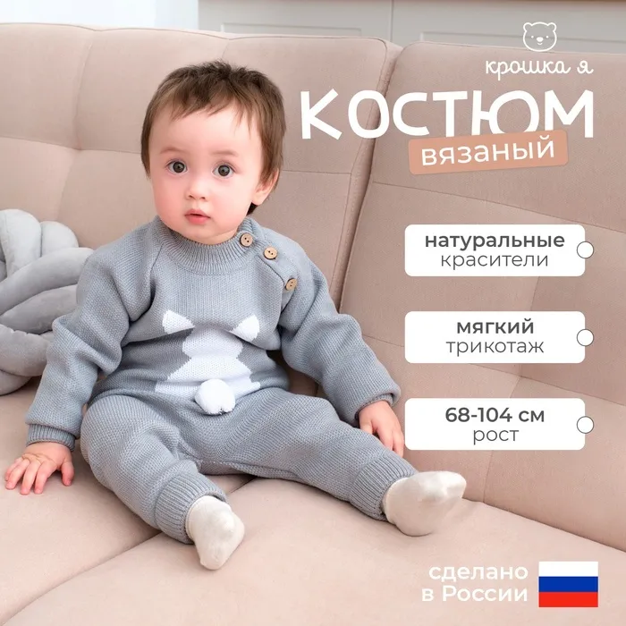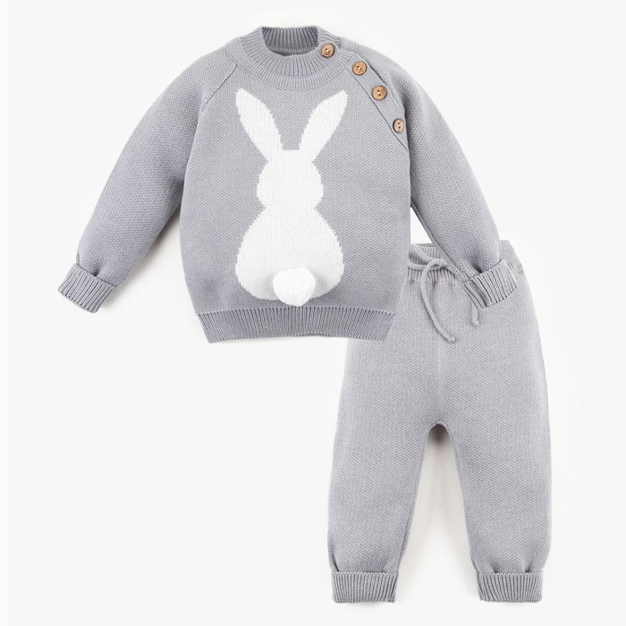 Комплект вязаный Крошка Я «Заяц», рост 98-104 см, серый — Характеристики