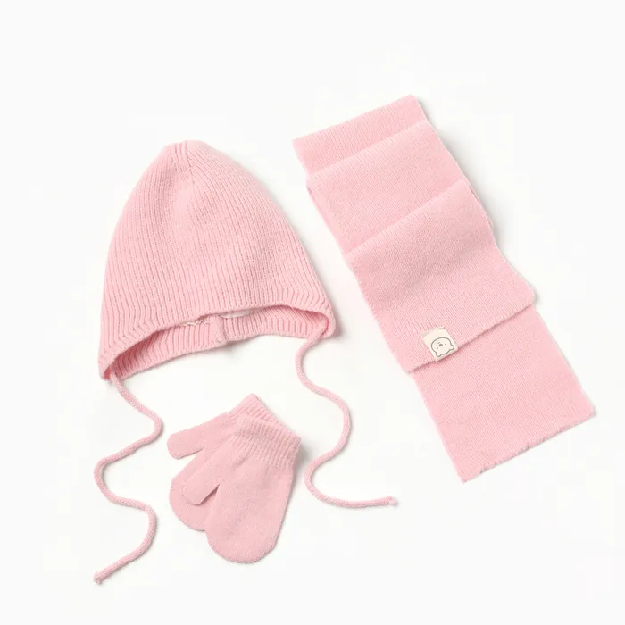Комплект вязаный: шапка, шарф, варежки (1-3 года), розовый — Характеристики