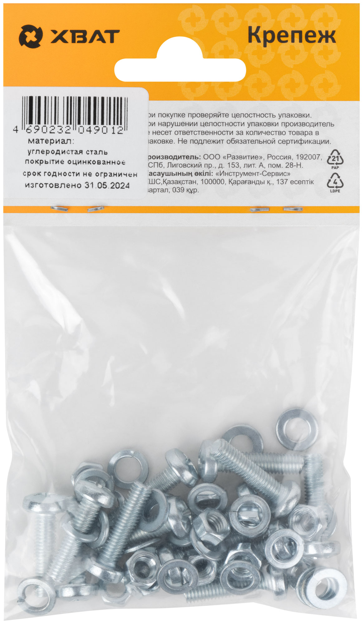 Этот комплект винтов с гайками и шайбами предназначен для выполнения разнообразных монтажных работ, где требуется надежное крепление. Идеальное решение для сборки мебели, установки оборудования и других задач, требующих прочных соединений.