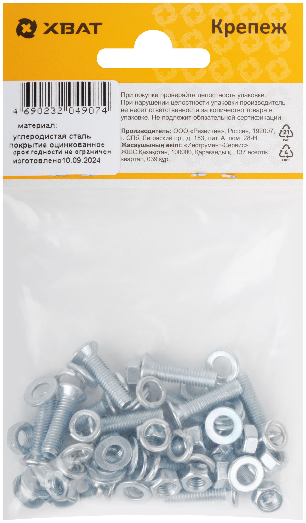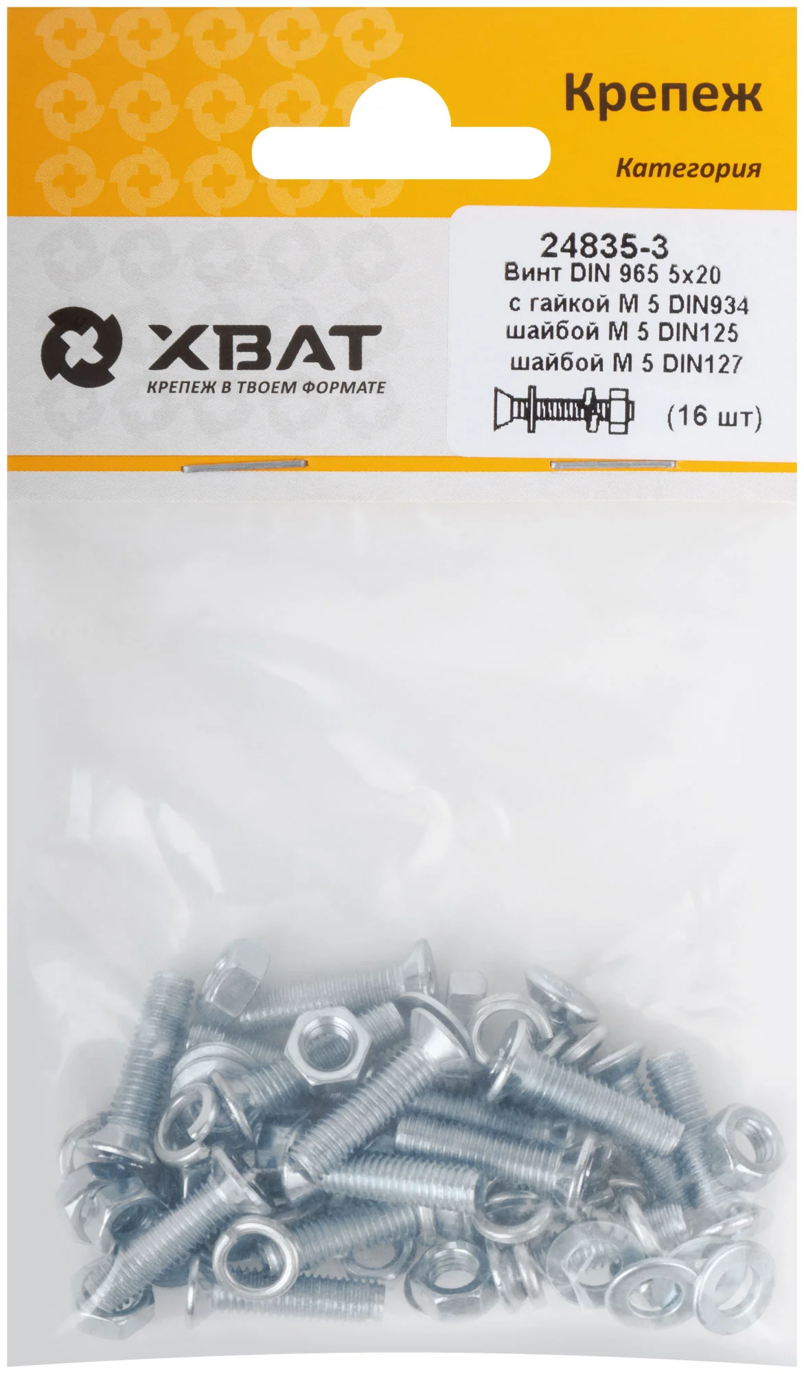 В комплект входят 16 винтов с потайной головкой по стандарту DIN965, а также гайки и шайбы, соответствующие стандартам DIN934, DIN125 и DIN127. Все элементы изготовлены из качественного металла, что гарантирует их стойкость к коррозии и износу.
