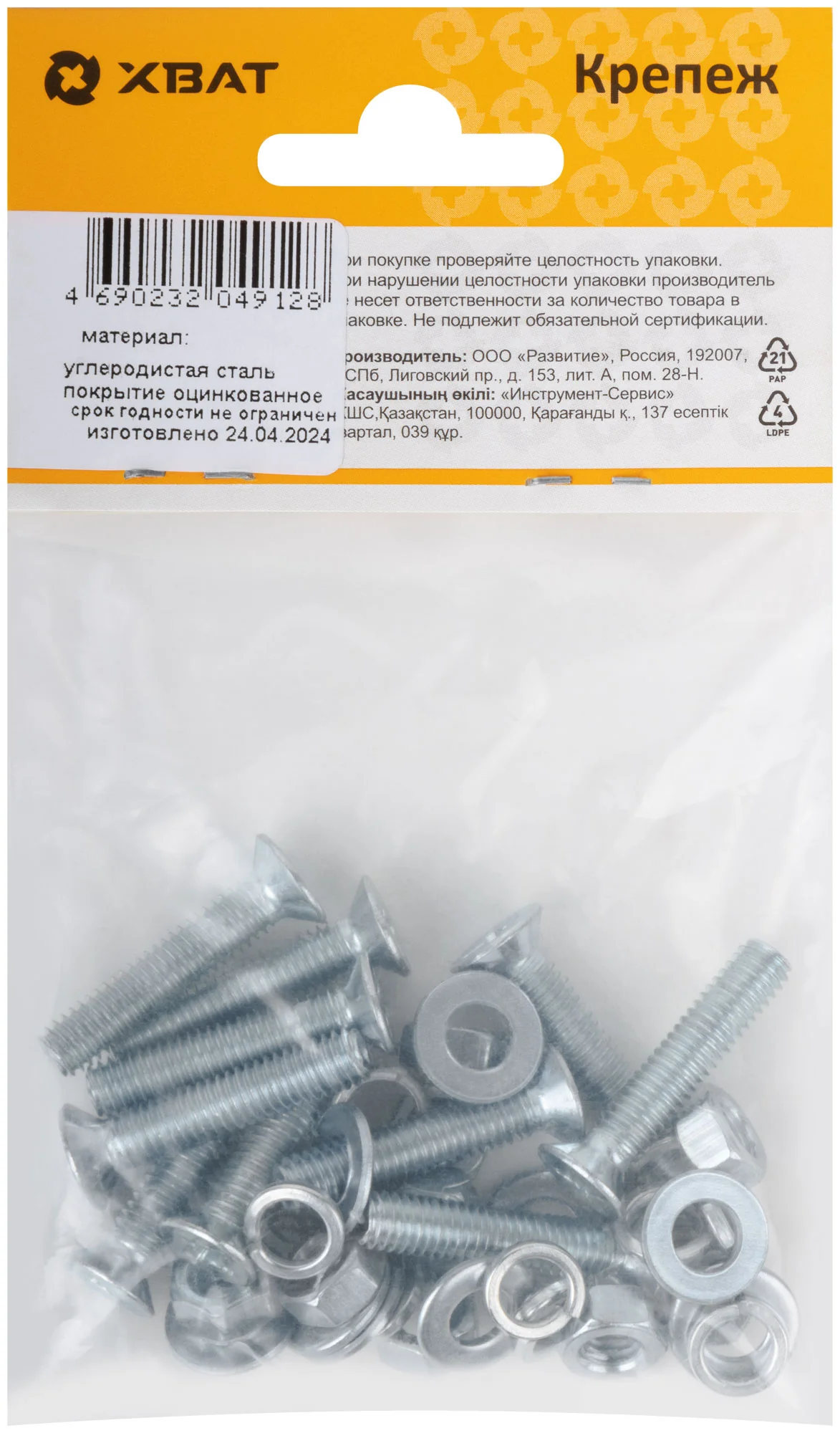 Этот комплект от XВАТ включает всё необходимое для крепежных работ, будь то монтаж мебели, установка оборудования или сборка конструкций. Комплект из 10 винтов, гайки и шайбы обеспечивают надежное соединение в любых условиях.