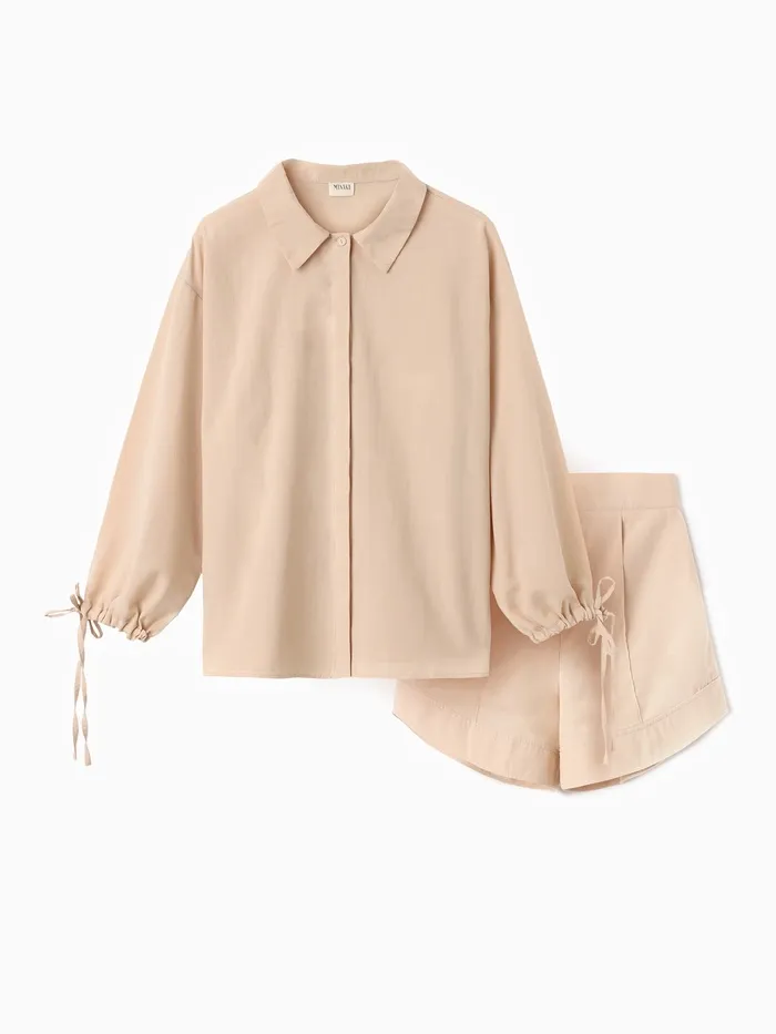 Комплект женский (блузка, шорты) MINAKU: Casual Collection, бежевый, размер 44 — Характеристики
