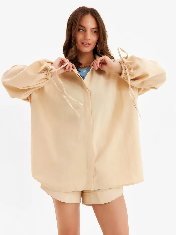 Комплект женский (блузка, шорты) MINAKU: Casual Collection, бежевый, размер 48 — Характеристики