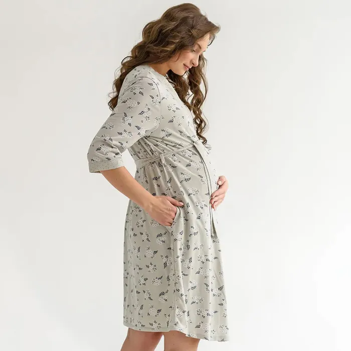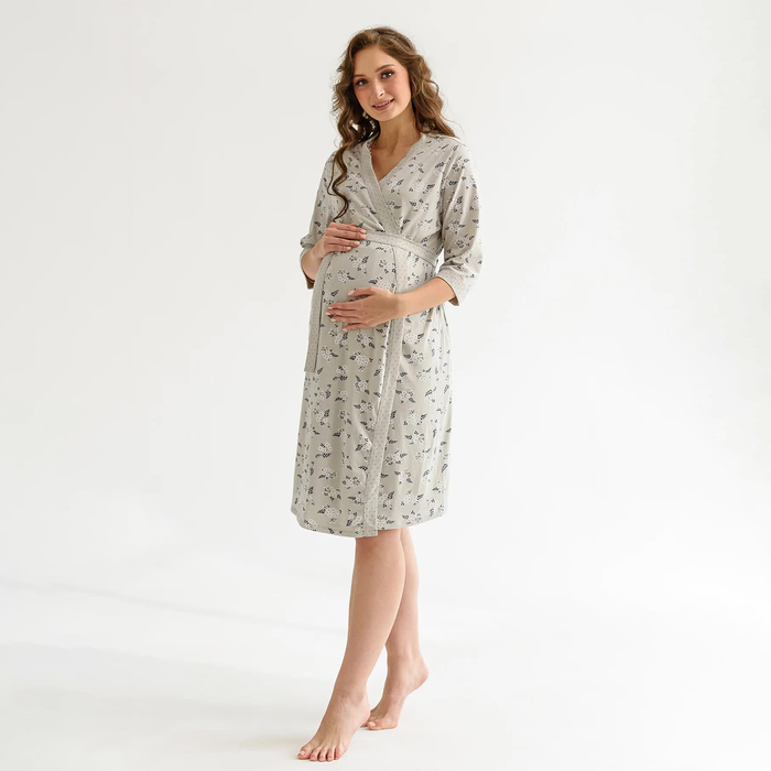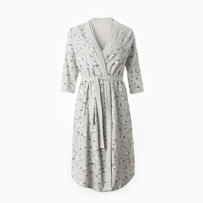 Комплект женский (сорочка/халат) для беременных, цвет серый, размер 46