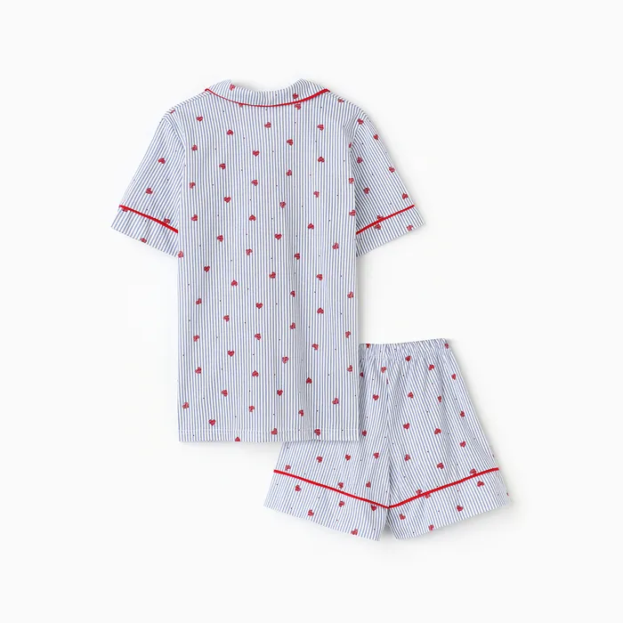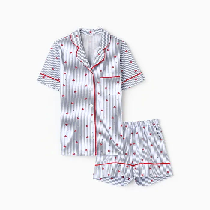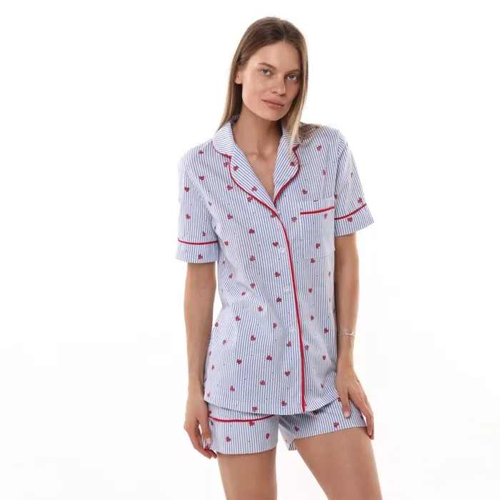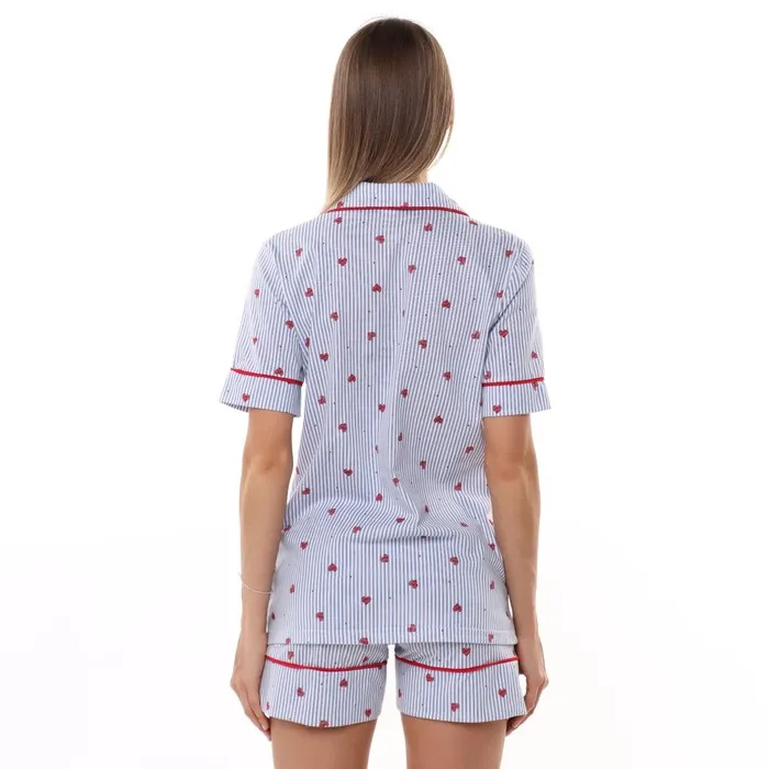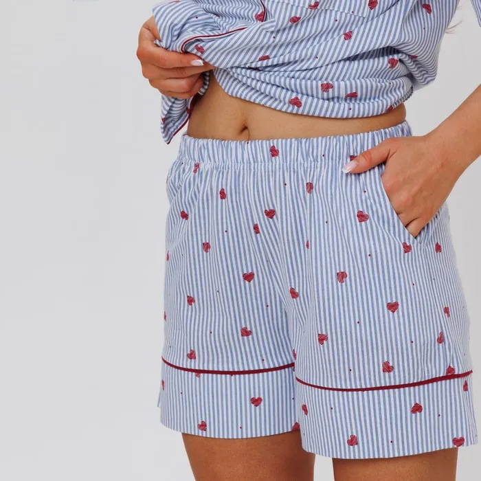 Комплект женский домашни (рубашка/шорты), цвет голубой/красный, размер 48