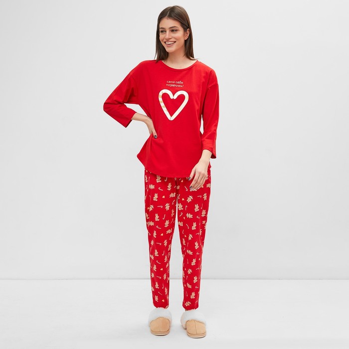 Комплект женский домашний (джемпер/брюки), цвет красный, размер 52