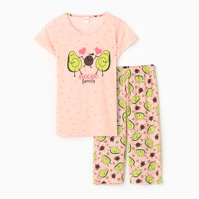 Комплект женский домашний (футболка/бриджи), цвет персиковый, размер 44