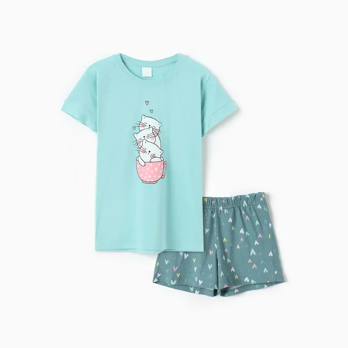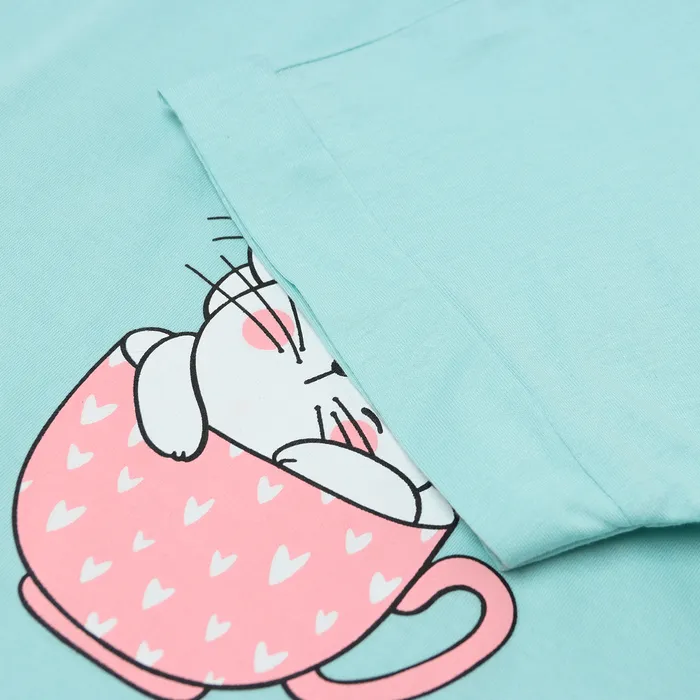 Комплект женский домашний (футболка,шорты) "Котята", цвет голубой, размер 50 — Характеристики