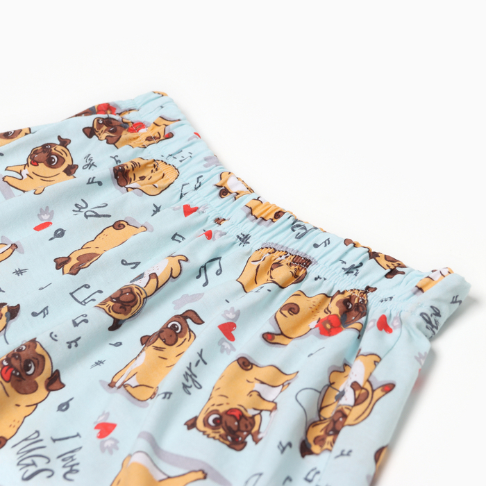 Комплект женский домашний (футболка,шорты) "Мопс", цвет белый/голубой, размер 44 — Характеристики
