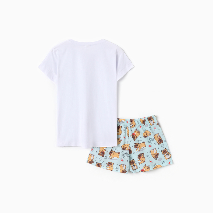 Комплект женский домашний (футболка,шорты) "Мопс", цвет белый/голубой, размер 44